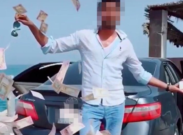 ألقت شرطة دبي القبض على صاحب فيديو انتشر عبر مواقع التواصل الإجتماعي وهو شاب ثلاثيني من احدى الجنسيات الآسيوية يرمي الأوراق النقدية للدولة في الهواء في منظر غير حضاري أو لائق بأحد شوارع دبي بقصد التفاخر و التباهي.